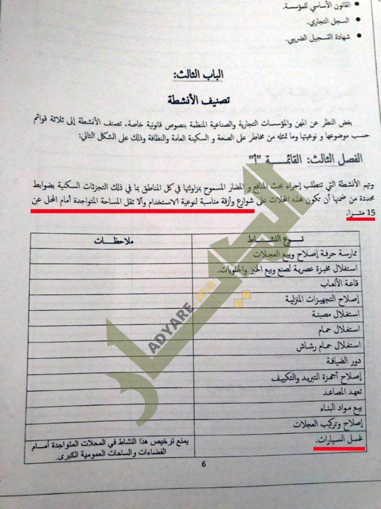 وأضافت مصادرنا الموثوقة أن المعارضة داخل المجلس، طلبت، هي الأخرى، استفسارات من القسم الاقتصادي حول تفاصيل “الترخيص” لهذا المحل رغم مخالفته القرار الجماعي عدد 422 بتاريخ 4 غشت 2016، يشترط، في فصله الثالث، أن يكون “المحل على شوارع وأزقة مناسبة لنوعية الاستخدام وألا تقل المساحة المتواجدة أمام المحل عن 15 مترا” (الوثيقة)، يشرح مصدرنا، قبل أن يشدد على أن الطريق أمام هذا المحل لا تتجاوز 12 مترا.