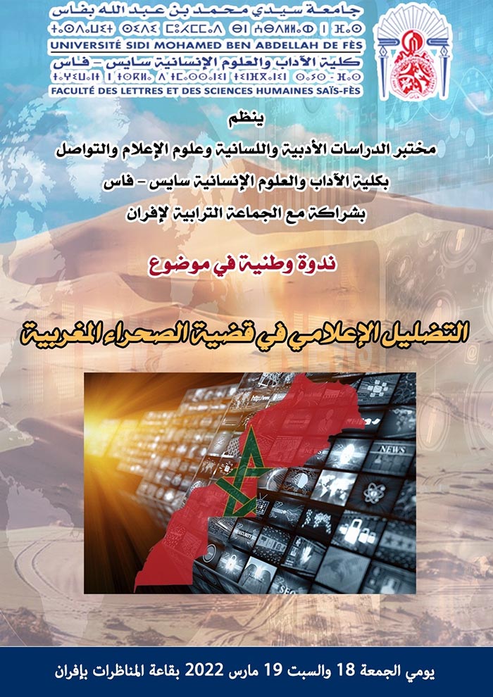 كيف نواجه التضليل الإعلامي في قضية الصحراء المغربية؟ وكيف نترافع عن القضايا الكبرى للوطن؟ هذه أسئلة ضمن أخرى تشكل محاور ندوة يرتقب أن ينظمها مختبر الدراسات الأدبية واللسانية وعلوم الإعلام والتواصل بكلية الآداب والعلوم الإنسانية فاس سايس التابعة لجامعة سيدي محمد بن عبد الله بمدينة إفران يومي 18 و19 مارس الجاري.