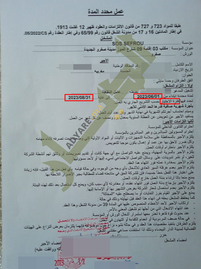 ولم يستبعد مصدر جريدة “الديار”، رفض الكشف عن هويته، أن تكون عملية تشغيل 30 عاملا بعقود “عمل محددة المدة”، والتي وصفها بـ”عقود العبودية” في إشارة منه إلى بنودها ( سبق لنقابي أن علق عليها في مقال سابق بجريدة “الديار”)، في 3 أشهر (من 01 يونيو 2023 إلى 31 غشت 2023)، خطة و”تمويها” من الشركة، لتظهر احترامها لدفتر التحملات، وفق تعبيره.