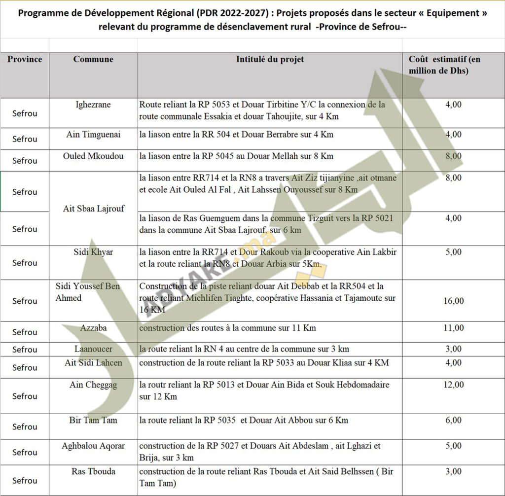 وخلق تداول لائحة مشاريع إقليم صفرو المتعلقة بـ”برنامج تعزيز الولوجية وفك العزلة” المدرج في برنامج التنمية الجهوية غضب رؤساء جماعات ومستشارين من جميع الهيئات السياسية تقريبا، معربين عن سخطهم من طريقة تحديد الجماعات المستفيدة من مشاريع إنشاء الطرق.