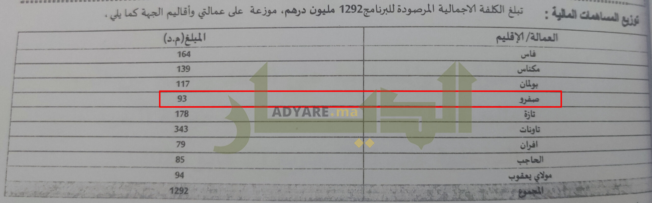 وتساءلت المصادر ذاتها باستغراب عن “السياسة” التي اعتمدها مجلس الجهة لاختيار الجماعات المستفيدة، مستفسرة، أيضا، عن “معايير” تحديد ميزانية كل جماعة؟ محملة مسؤولية “فضيحة” عدم استفادة إقليم صفرو، على غرار باقي أقاليم الجهة من ميزانية مهمة، إلى ممثليه في المجلس، ومحيلة جريدة “الديار” على الصدى الكبير الذي خلفه ممثلو بعض الأقاليم في الجهة، وعلى رأسهم المستشارون عن تاونات، الذين دافعوا عن إقليمهم بشراسة، وفق تعبيرها.