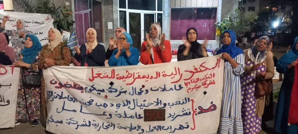 عشرون ليلة هي حصيلة الليالي اللائي أمضينهن العاملات المطرودات من مصنع “سيكوميك” بمكناس، معتصمات أمام محيط فندق تابع لصاحب المعمل المذكور، بسبب تعرضهن للطرد التعسفي، حسبهن.