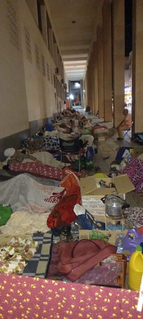 وتعيش المعتصمات وأطفالهن ظروفا مزرية أمام الفندق حيث يعشن حياة تشبه إلى حد كبير حياة اللاجئين، فهن يقضين أيامهن ولياليهن ملتحفات السماء مفترشات العراء.