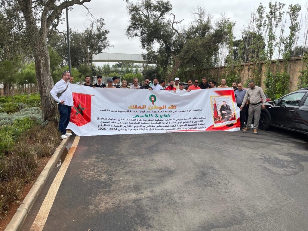أمام مقر الجامعة الملكية المغربية لكرة القدم بالرباط، التأمت جمعيات كرة القدم داخل القاعة والفرق النسوية المنضوية تحت عصبة جهة فاس مكناس من أجل الاحتجاج على “الظلم” الذي تتعرض له، والمطالبة برفع “الحيف” عنها، وإنصافها.