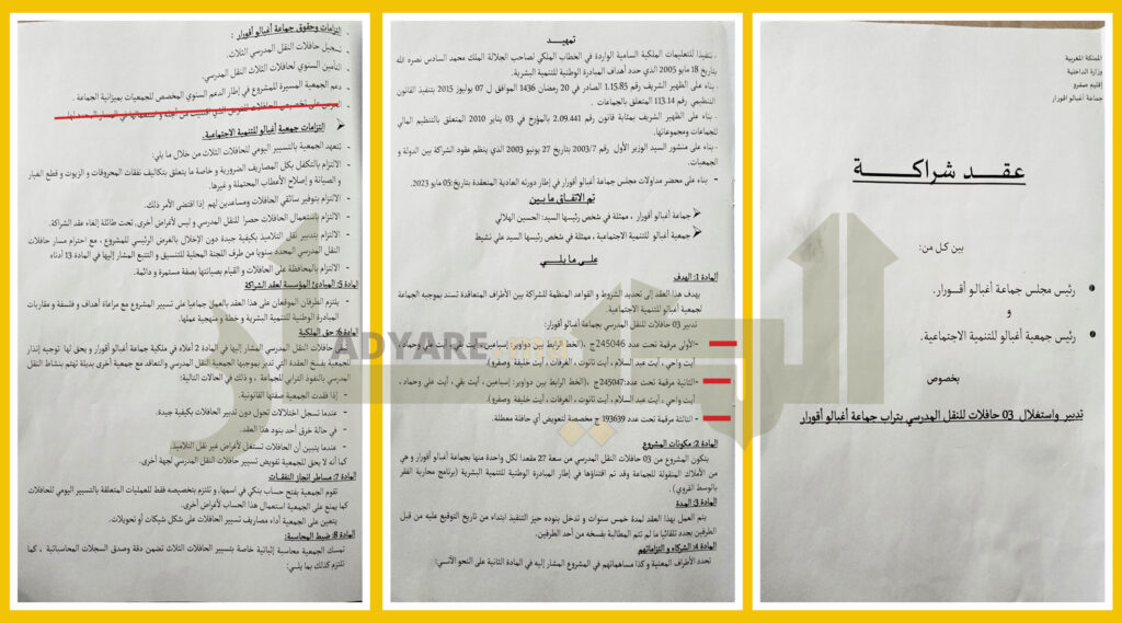 مصادر مطلعة قالت إن الجماعة لا حق لها في التدخل في حافلات النقل المدرسي، فبالإحرى إصدار “ترخيص” لتنظيم رحلة بواسطتها، مشددة على أن المادة 4 تؤكد على التزام الجماعة بتسجيل الحافلات وتأمينها ودعم الجمعية المسيرة للمشروع في إطار الدعم المخصص للجمعيات من ميزانية الجماعة، مع الحرص على تخصيص الحافلات للغرض الذي اقتنيت من أجله واستعمالها في المسار المحدد لها، (وهو دواوير: إسباعين، آيت بقي، آيت علي وحماد، آيت واحي، ايت عبد السلام، آيت تانوت، الغرفات، آيت خليفة وصفر.