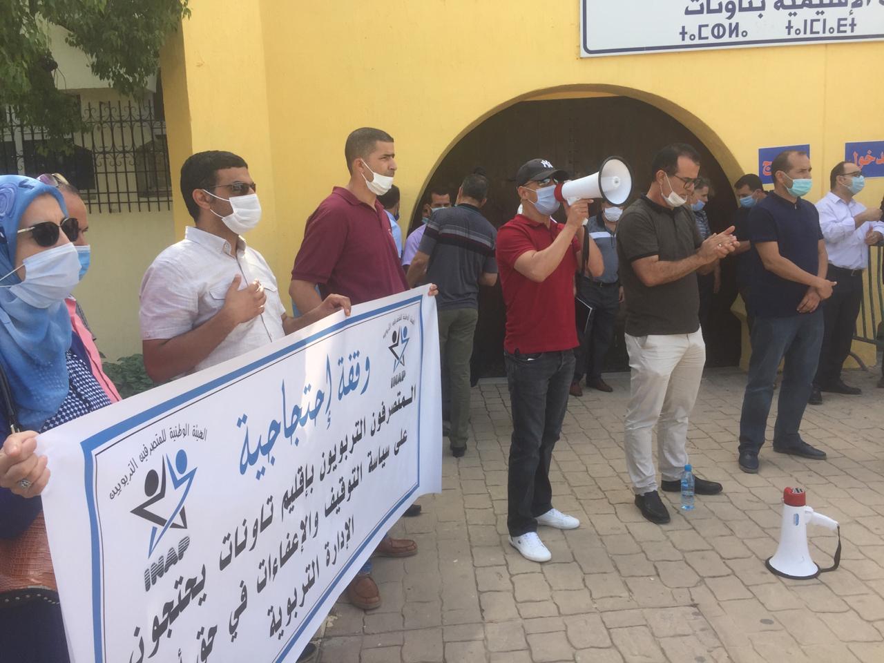 نظمت الأطر التربوية والإدارية، صباح اليوم الجمعة، وقفة احتجاجية أمام مديرية التعليم بإقليم تاونات، ضد قرار توقيف مدير مجموعة مدارس أولاد العسري، بدعوى التقصير في تطبيق البروتوكول الصحي بالوحدة المدرسية تعاونية السلام.
