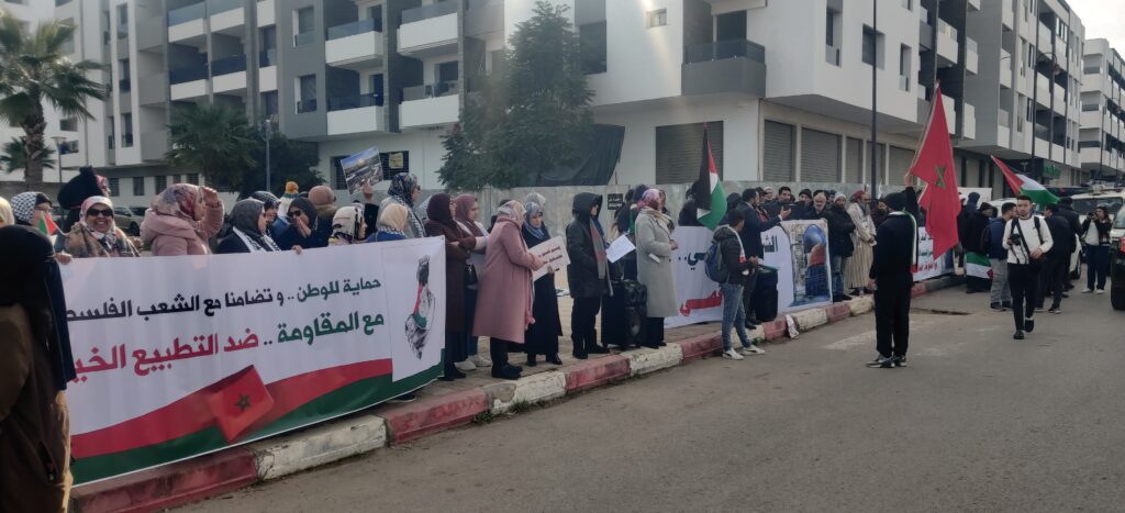 ففي الساحة المقابلة لمقر الجماعة، رفع عدد من المحتجين شعارات مناوئة للعمدة البقالي معبرين عن رفضهم المطلق لأي خطوة تطبيع مع إسرائيل، ودعوا المجلس الجماعي للمدينة إلى التراجع عن هذه الخطوة التي قالوا بأنها مستفزة لمشاعر الساكنة المحلية في وقت تشهد فيه فلسطين استمرار “الغطرسة” الإسرائيلية من خلال مواصلة تنفيذ الاعتداءات والاغتيالات في صفوف أبناء الشعب الفلسطيني.