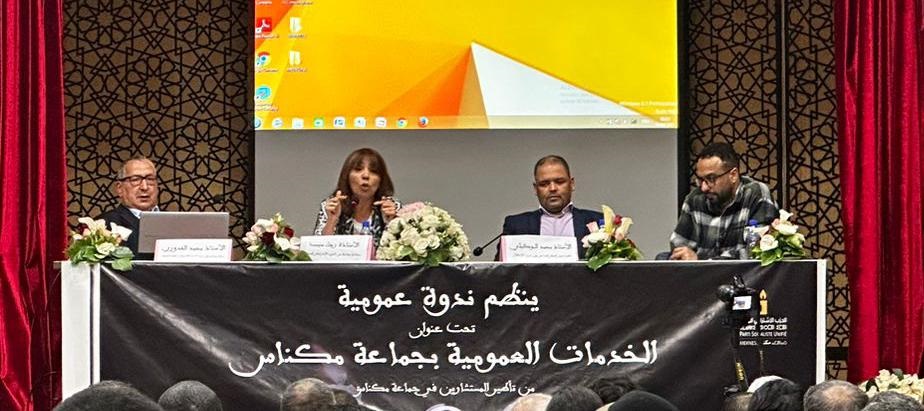 نظم حزب الاشتراكي الموحد، مساء أمس الإثنين، ندوة عمومية حول خدمات جماعة مكناس، أطرها نائب رئيس المجلس محمد البوكيلي والمستشارين محمد القدوري عن فريق الإتحاد الاشتراكي ورجاء منيب عن حزب الاشتراكي الموحد.