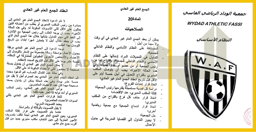 “وتبقى المخالفة الأهم، والتي صارت “عرفا” مقبولا في الجموع العامة غير العادية للجمعيات الرياضية بجهة فاس مكناس للأسف الشديد، هو انبثاق “رئيس” عن جمع عام استثنائي”، تشرح المصادر بحيرة، قبل أن تشدد أن القانون يؤكد بالبند العريض أن الجمع العام الاستثنائي يعين لجنة تكلف بتصريف الأمور الجارية إلى حين انتخاب مكتب مديري جديد من قبل أقرب جمع عام عادي.