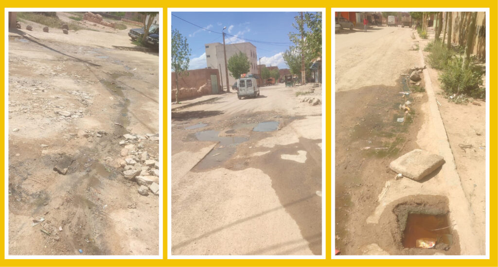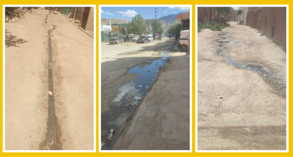 الصور التي أشاركها هنا ليست من أرشيف النسيان، بل من الواقع اليومي: مياه صرف صحي مكشوفة تمر وسط الأزقة، إما راكدة تزكم الأنوف، أو جارية كأنها نهر قذر يشق الأزقة و يعلن الفشل. مشاهد تهدد صحة الساكنة، خصوصًا الأطفال، وتضعهم في تماس مباشر مع الحشرات والميكروبات.